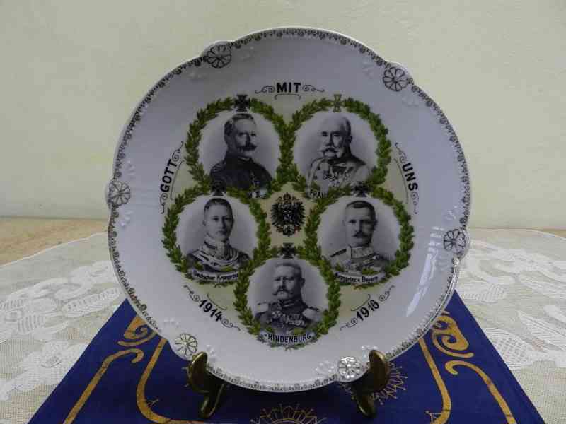 Sběratelský porcelánový Talíř s Francem Josefem a Vilémem. Dále Hindenburg a němečtí korunní princové, 1916.