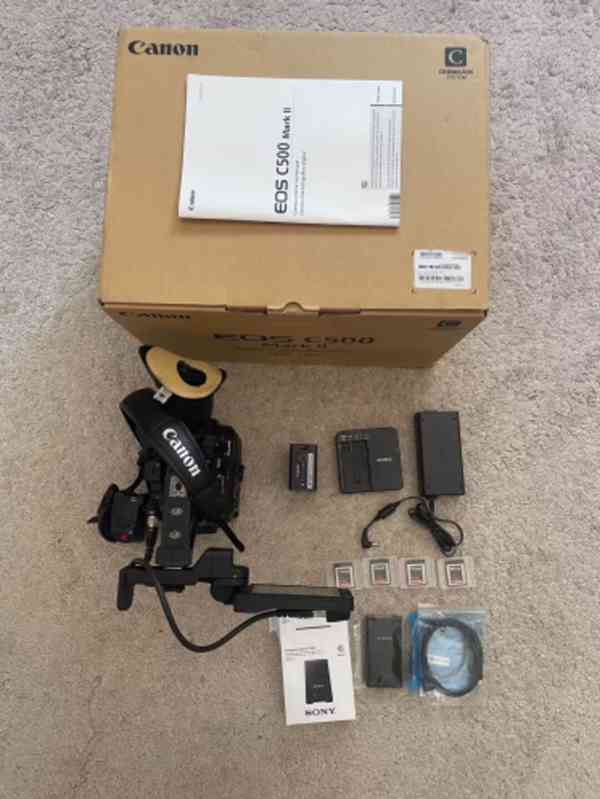 CANON C500 MARKII kamera v perfektním stavu, velmi neservisní, prodáván s originálním kartonu, Viewfinder EVF-V50, BP-A60 baterie, nová CFExpress čtečka karet, 4 CFExpress 512GB karty vysokorychlostní psaní / čtení, 1 micro CS1 SANKEN, 1 Zacuto ovládání rukojeti, 1 jediná nabíječka. Cena bez DPH.
