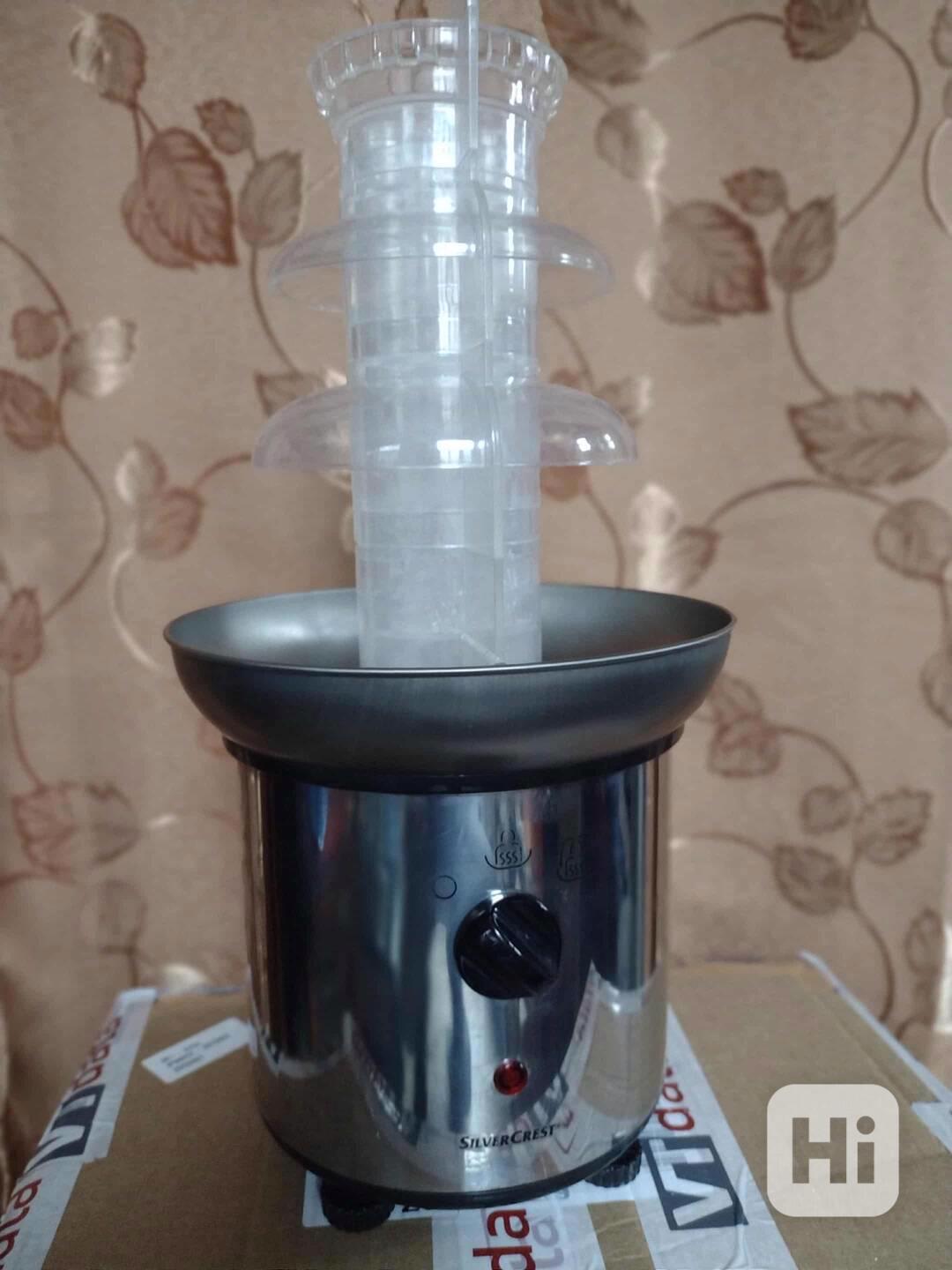 Vynikající zábavný prvek na rodinnou nebo dětskou párty čokoládová fontána. Každé oslavě dodá punc luxusu a oživí zážitek. Dopřejte si jej.Stroj má dvě oddělené sekce které umožňují současně použít dva druhy čokolády. Třeba bílou a hnědou což umocní kulinářský zážitek. Fontána je nepoužita a v originálním obalu s příslušenstvím. Obal-krabice je mírně poškozena.