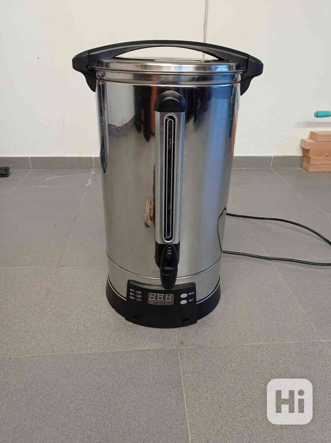 Automatický varný a udržovací termos na přípravu a udržení horké vody a teplých nápojù. Luxusní celonerezové, dvouplášové, izolované provedení (minimální teplotní ztráty = ekonomický provoz). Automatický systém výroby horké vody, nebo udržení připravených nápojù na požadované teplotě. Výdej nápoje automatickým výpustným kohoutem a množství nápoje v termosu je přehledně indikováno na rysce hladinoměru. Snadné nastavení předvolené varné, udržovací, nebo výdejní teploty na digitálním ovladači (60 / 80 / 100°C), zobrazení aktuální teplotu vody a požadované předvolené teploty na podsvíceném displeji. Nerezové bezpečnostní víko s ergonomickým bezpečným plastovým madlem, odnímatelná odkapávací miska s vyjímatelným roštem pod výdejním kohoutkem.