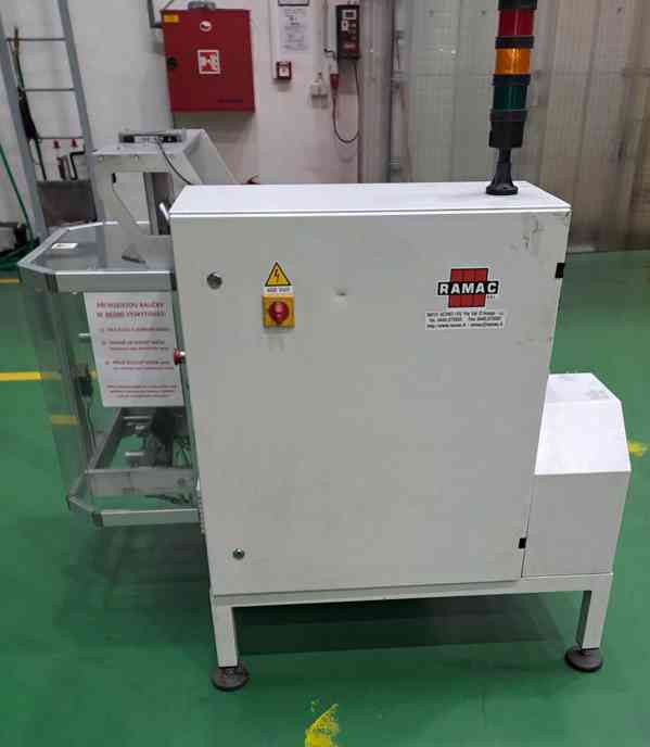 Prodáme použitý balící stroj VERT 0410, výrobce: Ramac, Itálie, r. v. 2018. Ve firmě skončila výroba jednoho dílu, který se balil do PE sáčků o rozměrech cca 50 x 80 mm. Stroj je možný uzpůsobit na balení sáčků v rozmezí šířek zhruba od 20 do 120 mm. Tok strojů byl okolo 40 sáčků za minutu. V případě zájmu jsou k dispozici i dopravníčky, které odvážely sáčky s díly do krabic. Stroj se k proudu připojit dá, ale těžko říci, jak moc se bude dát ukázat jeho provoz. Balící stroj byl součástí montážní linky, která je již zlikvidována. Stroj je nyní odpojený a uskladněný, obhlídka je možná. Ke stroji je český návod k obsluze a údržbě spolu s technickými parametry stroje.
