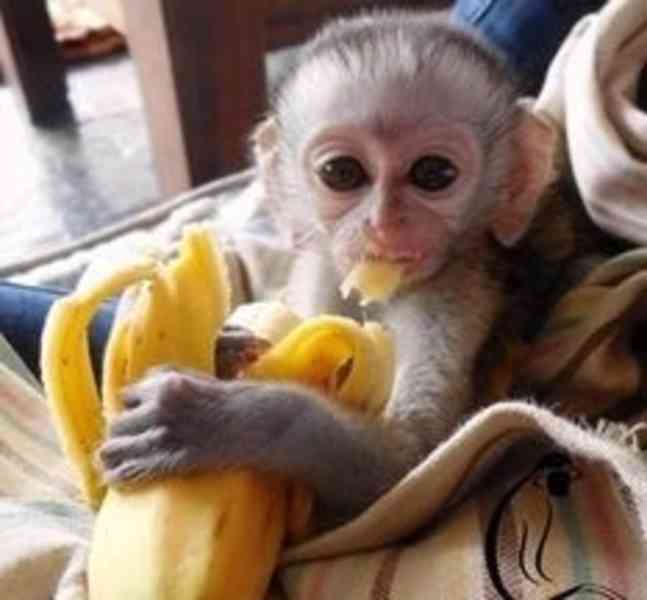 Kapucínská opička k adopci. Odchovává se doma, krmí se z lahvičky a ručně. Je velmi zdravá, nedávno prošla veterinární kontrolou a byla očkována.