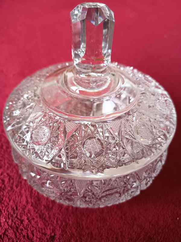 Krásná dóza s víkem z broušeného skla, průměr 15 cm, výška 18 cm