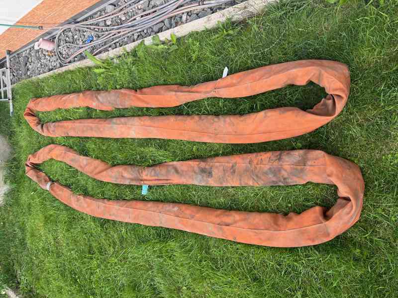 Prodám textilní nylonové vazáky Sewota. Nekonečná smyčka,2 kusy, nosnost 40 tun(viz. štítek na fotce)užitná délka 3790mm