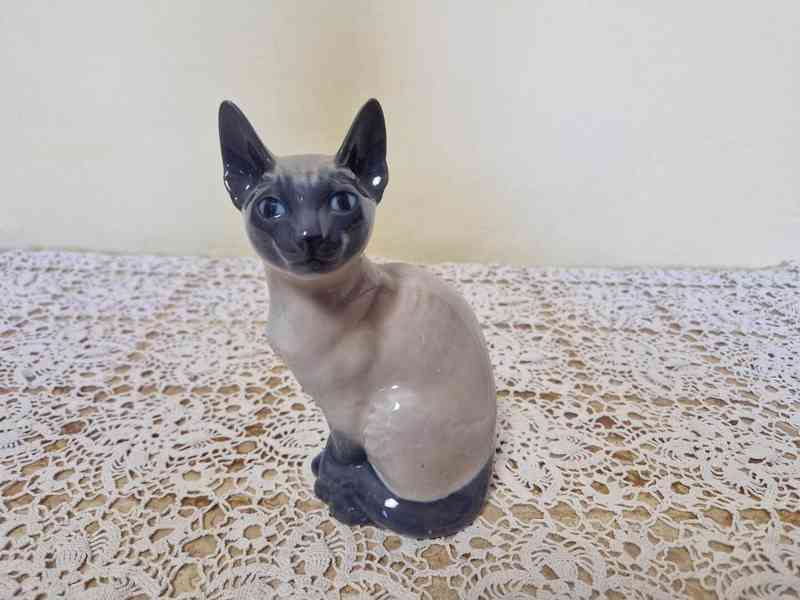 Porcelánová Plastika sedící Kočka či Kocour, větší velikost - Kodaň, Dánsko, 1 pol. 20 stol.