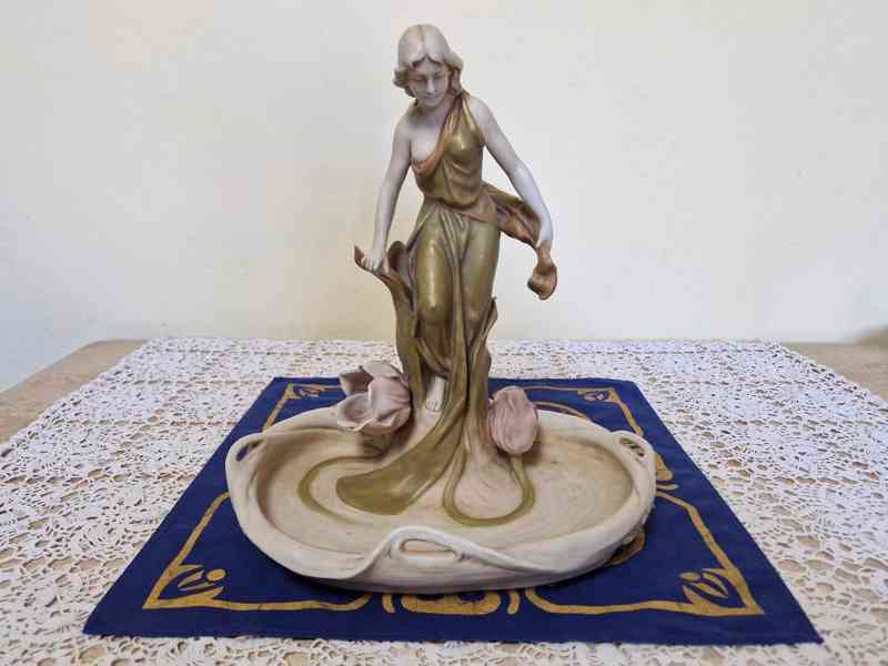 Krásná secesní porcelánová plastika s dívkou - Royal Dux, kolem 1920.