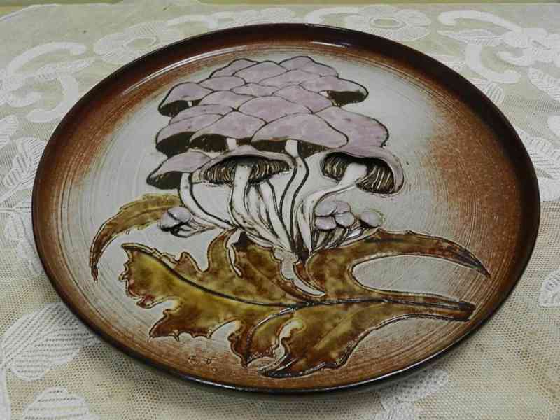 Zajímavý ručně malovaný plastický Talíř, Houby, kvalitní Autorská práce, Signováno, 2 pol. 20 stol.