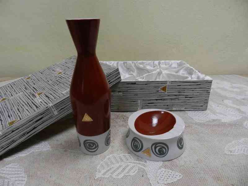 Originál sada Váza a Popelník, Brusel, značeno etiketou, s původní krabicí - Royal Dux, Jindřich Marek, kolem 60 let 20 stol.
