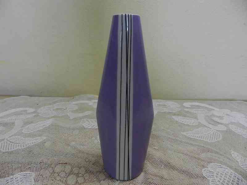 Fialová Váza s pruhy, Brusel, značeno etiketou - Royal Dux, Jindřich Marek, kolem 60 let 20 stol.