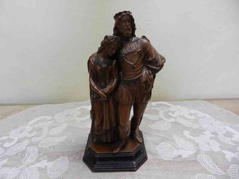 Krásné figurální Sousoší, Panovník s Chotí, glazovaná lakovaná keramika, kvalitní zpracování - Značeno CS, severní Čechy, konec 19 stol.