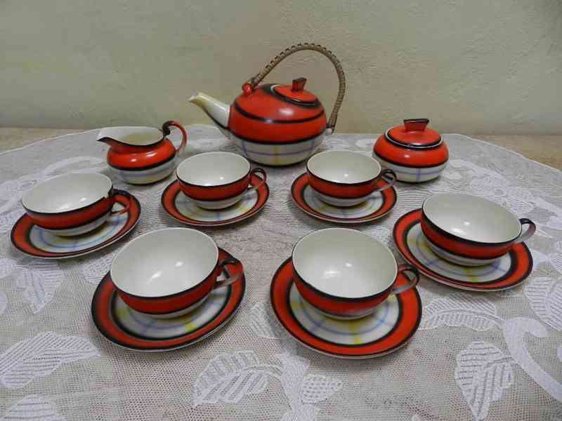 Krásný stylový keramický Art Deco servis 6 osob - Gustav Bihl, 1 pol.20 stol.