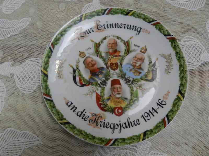 Sběratelský porcelánový Talíř s Francem Josefem a Vilémem a Spojenci, 1916.