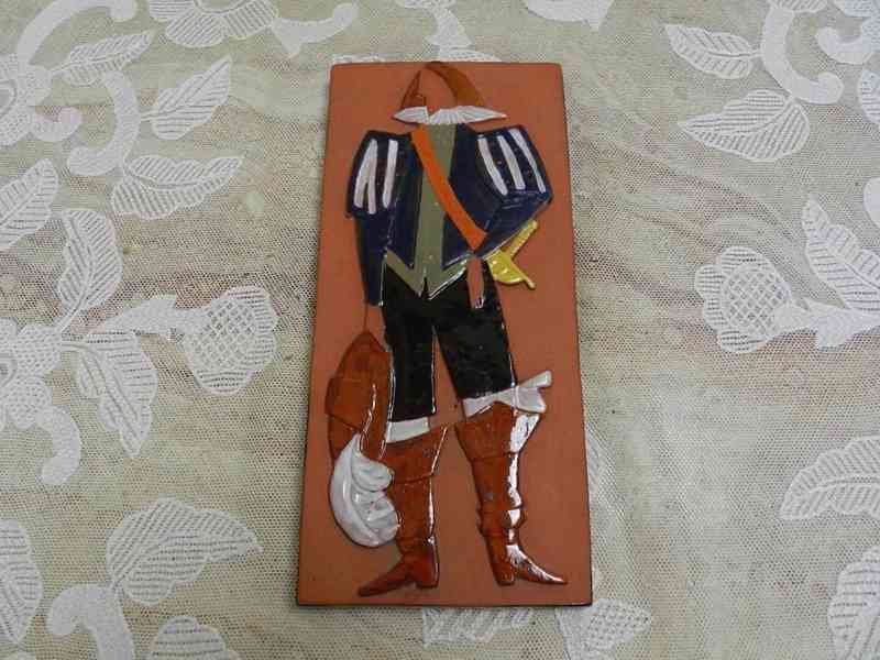 Zajímavý starý Obrázek na zeď, glazovaná terakota, Mušketýr - Keramo Vršovice, značeno.