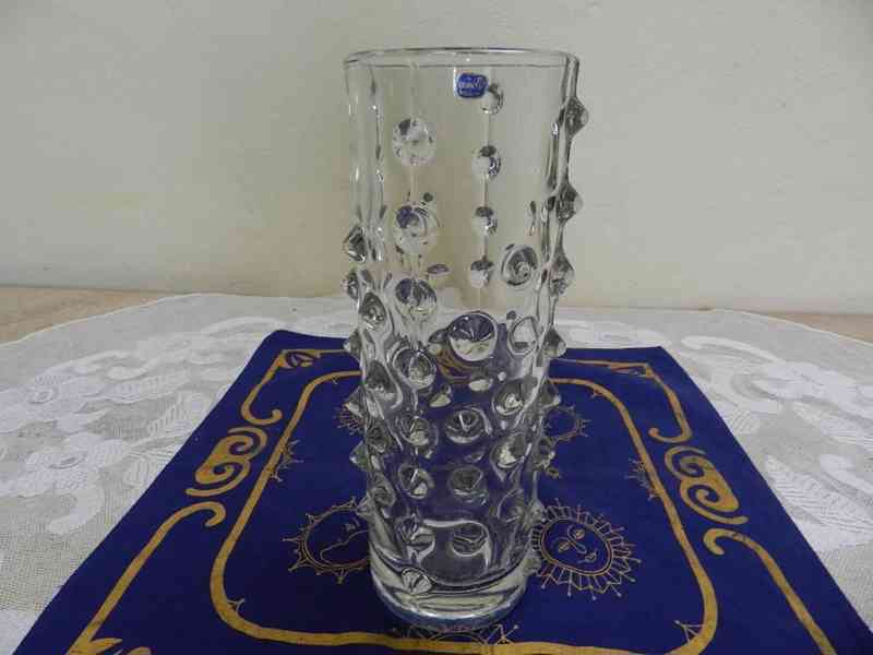 Zajímavá masivní autorská Váza s nálepy , čiré sklo - Bohemia Glass, 2 pol. 20 stol.