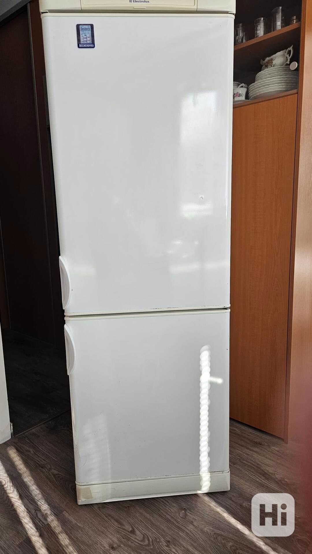 Lednice Elektrolux, použitá v dobrém stavu. Dva kompresory, zvlášť nastavitelná teplota v chladničce a mrazáku. Výška 175 cm, šířka 65 cm, hloubka 57 cm.