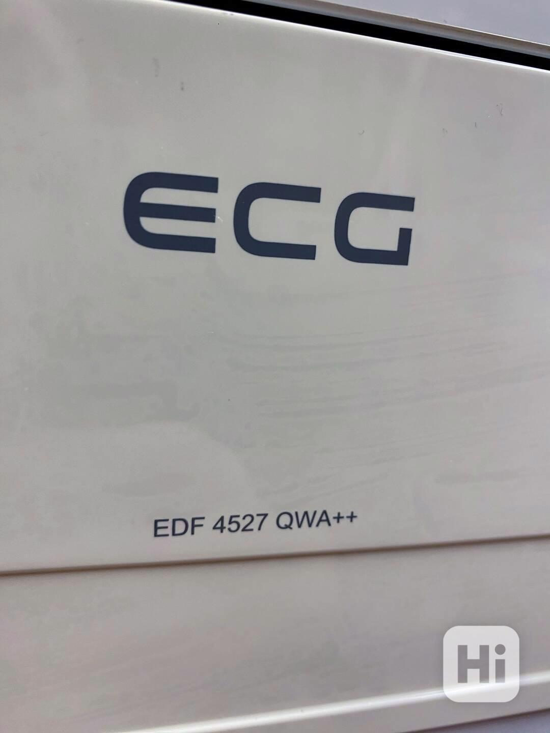 Volně stojící myčka nádobí ECG EDF 4527 QWA++. 45 cm V bílém provedení a pro 9 sad nádobí s 5 programy. Nechybí výbava jako LED displej s červeným podsvícením a 2 sprchovací ramena, funkce odloženého startu až o 24 hodin a mytím s poloviční náplní.