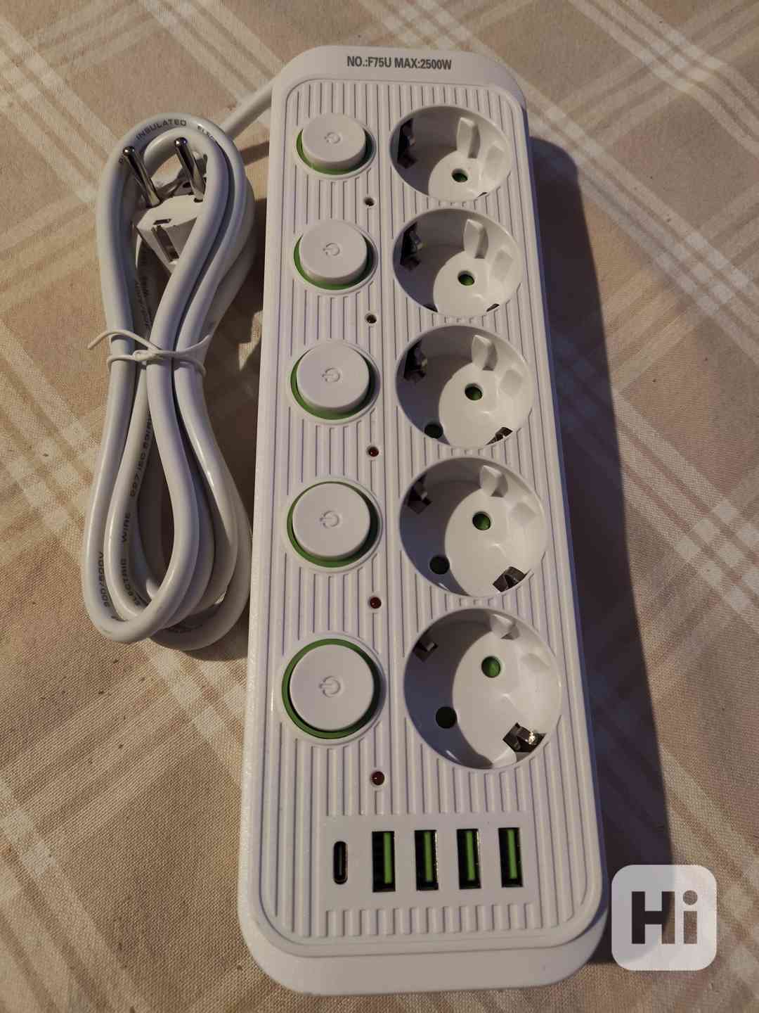 5+4 USB-A + USB-C (PD) + 3 Power switch 2 m , prodlužovací kabel s 2metrovým kabelem, průřezem 1,5 mm² a samostatnými vestavěnými vypínači s indikací na každé zásuvce.