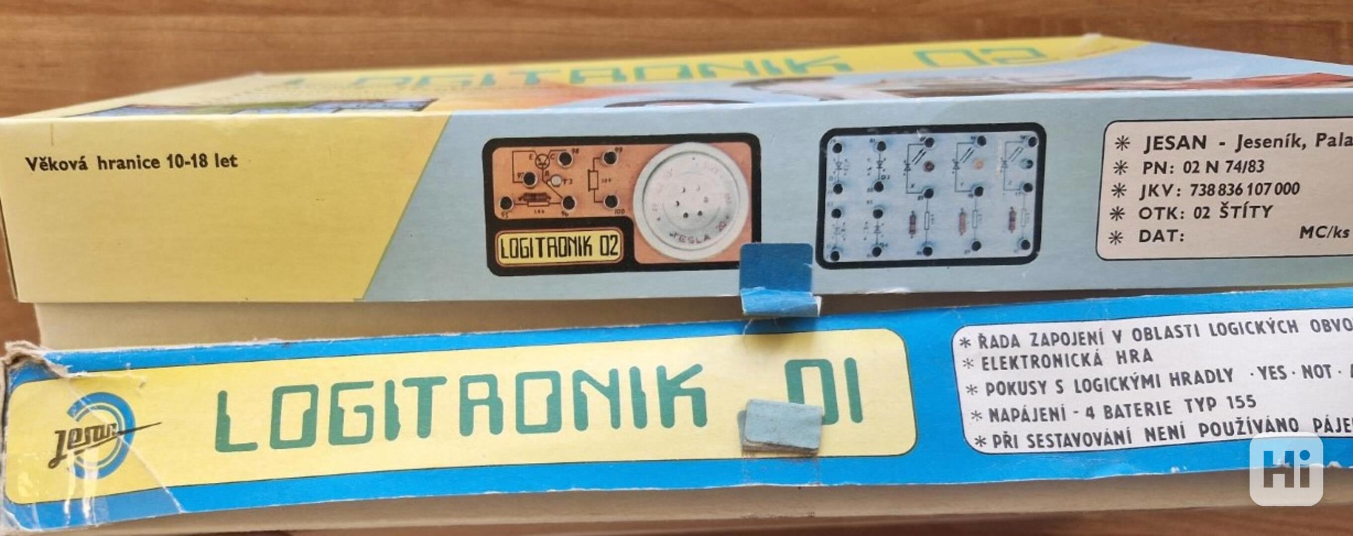 Kromě rezistorů a kondenzátorů obsahuje 1 diodu, 2 LED diody, 3 spínače a jediný logický integrovaný obvod 7400. K napájení slouží 4 tužkové baterie.