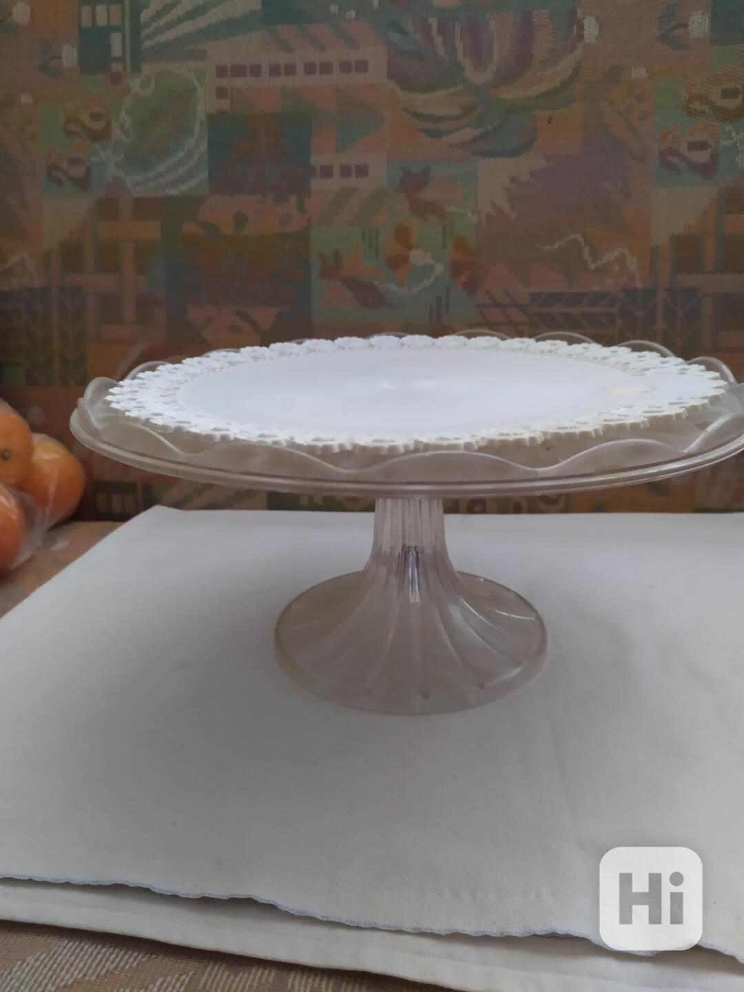 Plastový ozdobný podnos talíř na dort na noze 25 cm.Dá se rozložit.Navíc přidám i podložku na dort na talíř.Nožička se dá odejmout.Je skladný.Zašlu klasicky poštou nebo zásilkovnou či balíkovnou za 50.Kč.