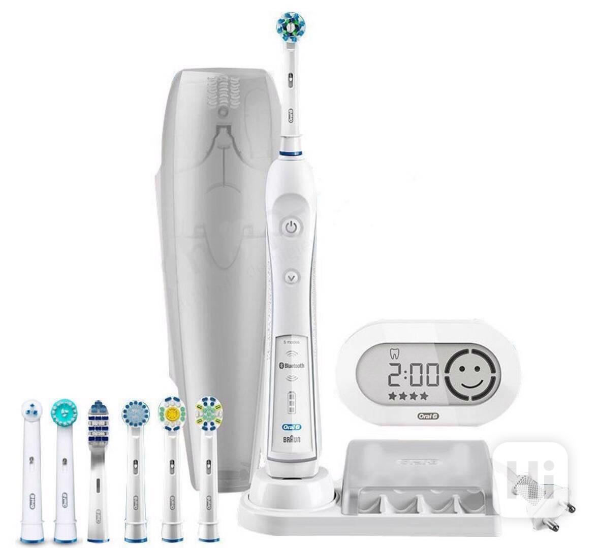 Oscilačně rotační zubní kartáček s aplikací Oral-B® app. Samostatný bezdrátový displej SmartGuide a integrovaný bluetooth v rukojeti kartáčku lze propojit s chytrým telefonem pomocí aplikace Oral-B® app. Získáte tak přehled o průběhu čištění, statistiku čištění zubů, tipy na zlepšení péče a řadu dalších funkcí. Samotný interaktivní LCD displej SmartGuide názorně provádí celým čištěním, zobrazuje aktuální čistící režim, rozděluje dobu čištění na 4x30 sekund a upozorňuje na přílišný tlak při čištění. 3D technologie čistění (pulzuje, osciluje a rotuje) se 40.000 pulzacemi a 8.800 oscilacemi za minutu naruší a následně odstraní až o 100 % více zubního plaku než běžný manuální zubní kartáček.