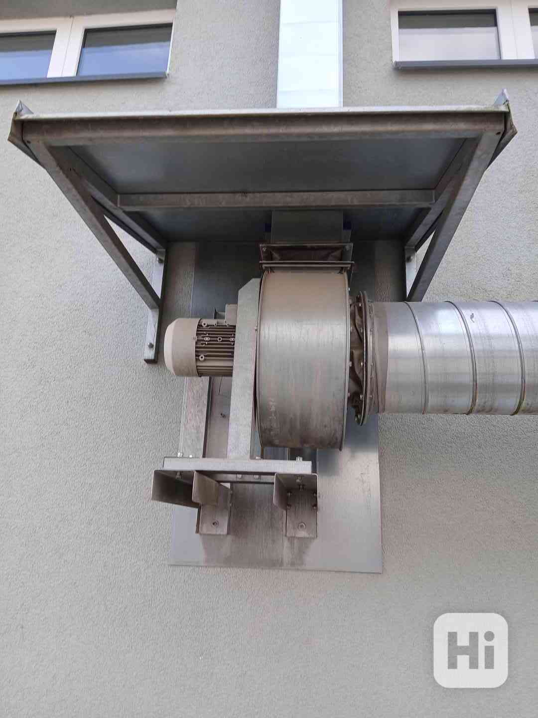 Radiální nízkotlakový ventilátor RNS 315, málo používaný, rok výroby 2017, výrobce Kovodružstvo Strážov. Část potrubí k tomu.