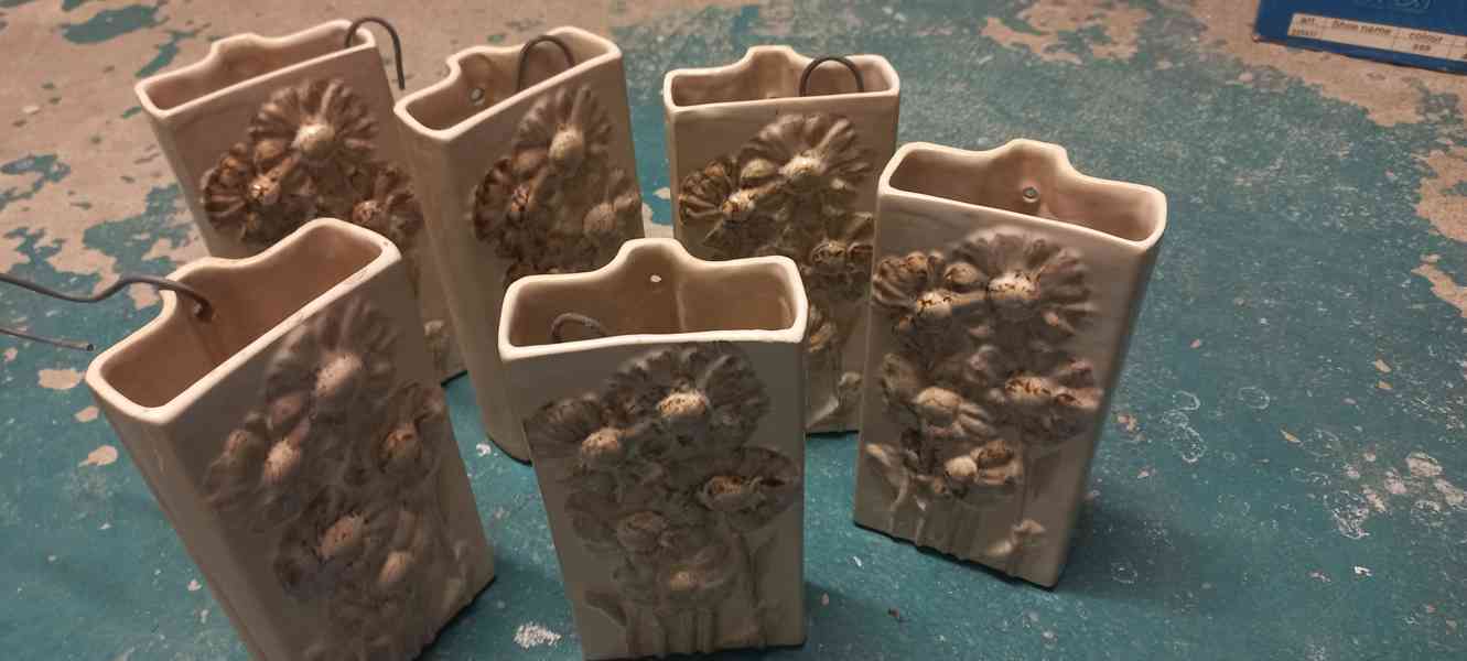 Dekorativní keramický, včetně háčků. Sálající teplo z radiátoru způsobuje odpařování nalité vody, čímž se zvlhčuje vzduch v místnosti. 500 Kč za všech 6 ks celkem.